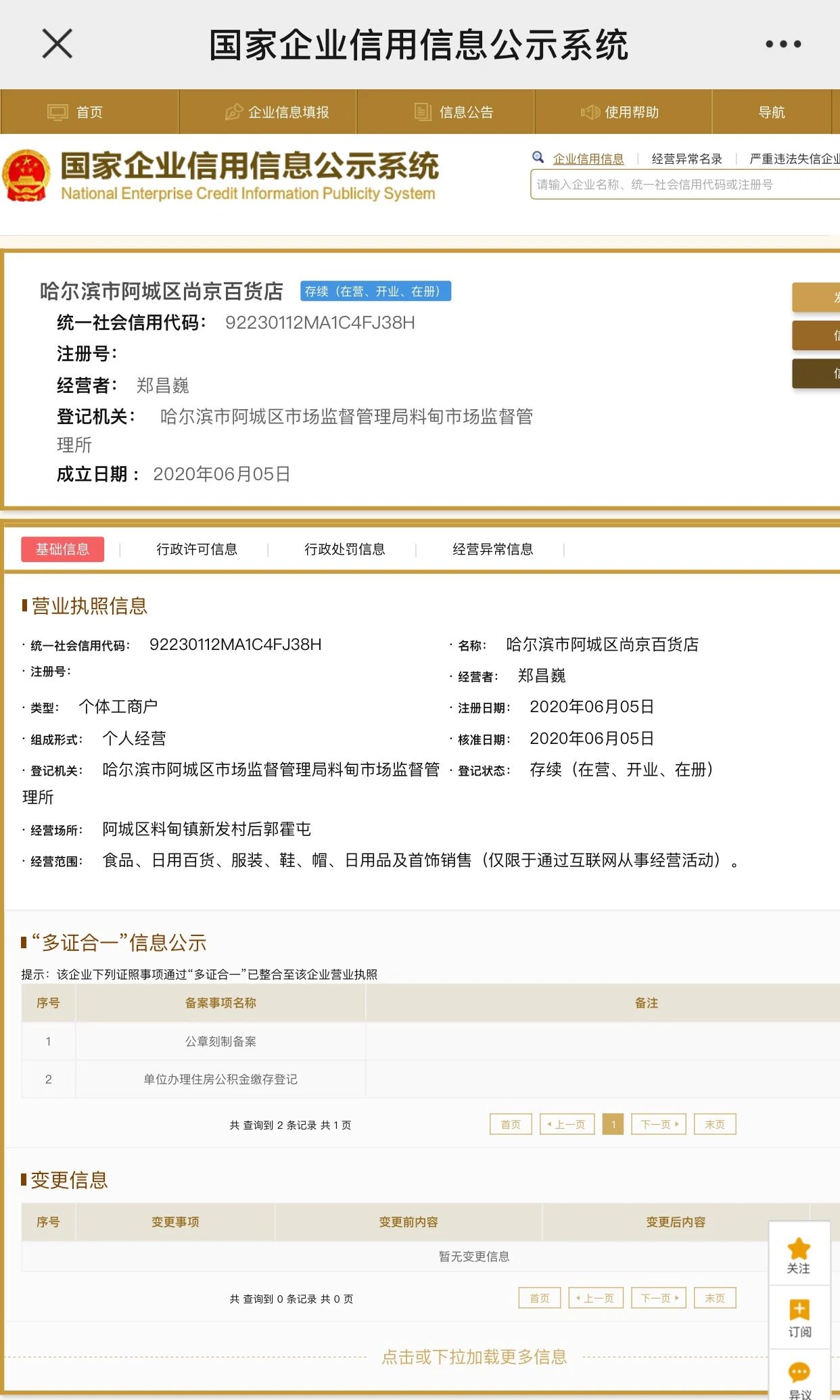 提示法定代表人身份证号码工商数据未更新