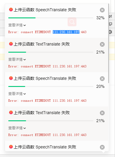 显示ETIMEOUT,无法上传更新云函数