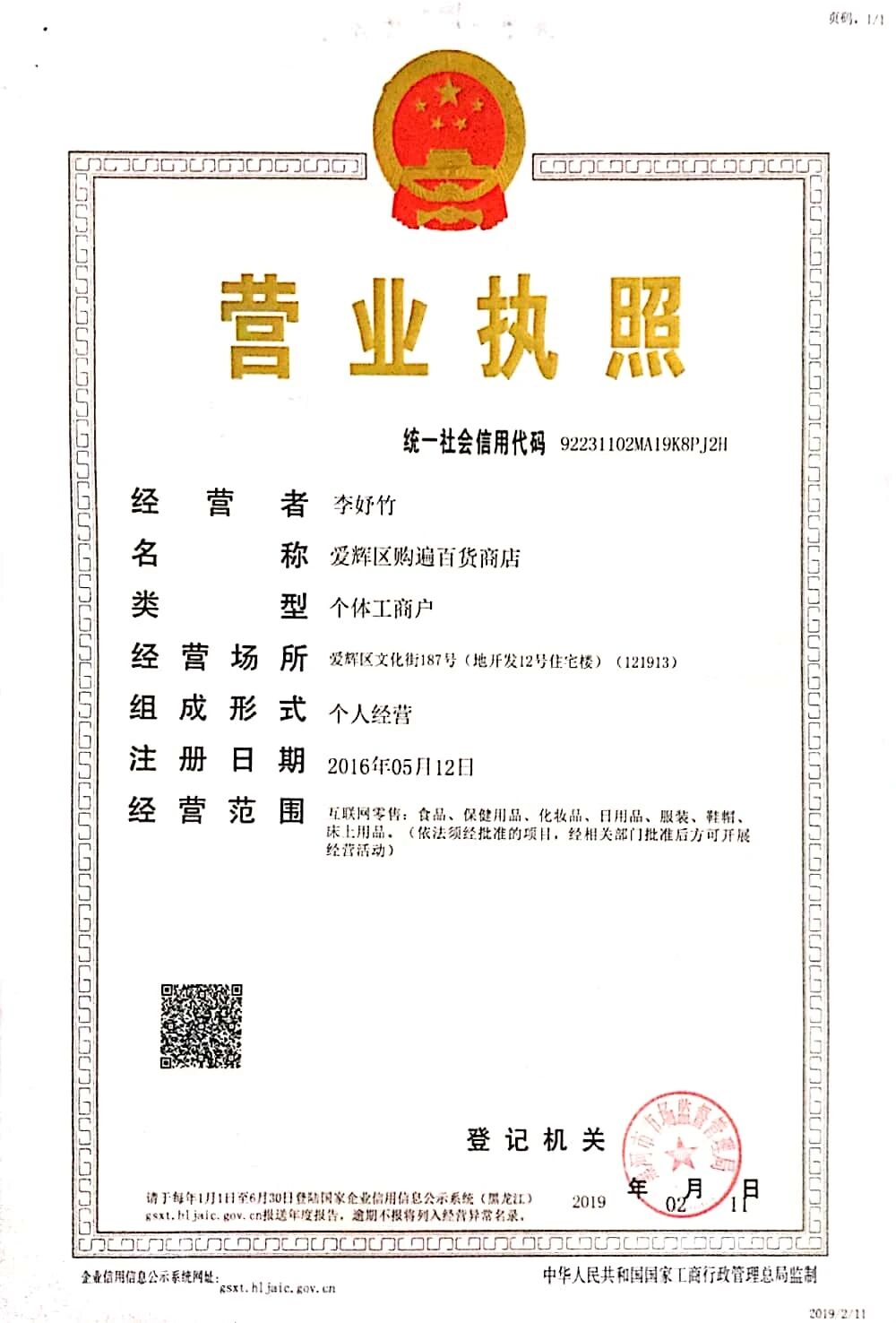 你好,请补充营业执照看下