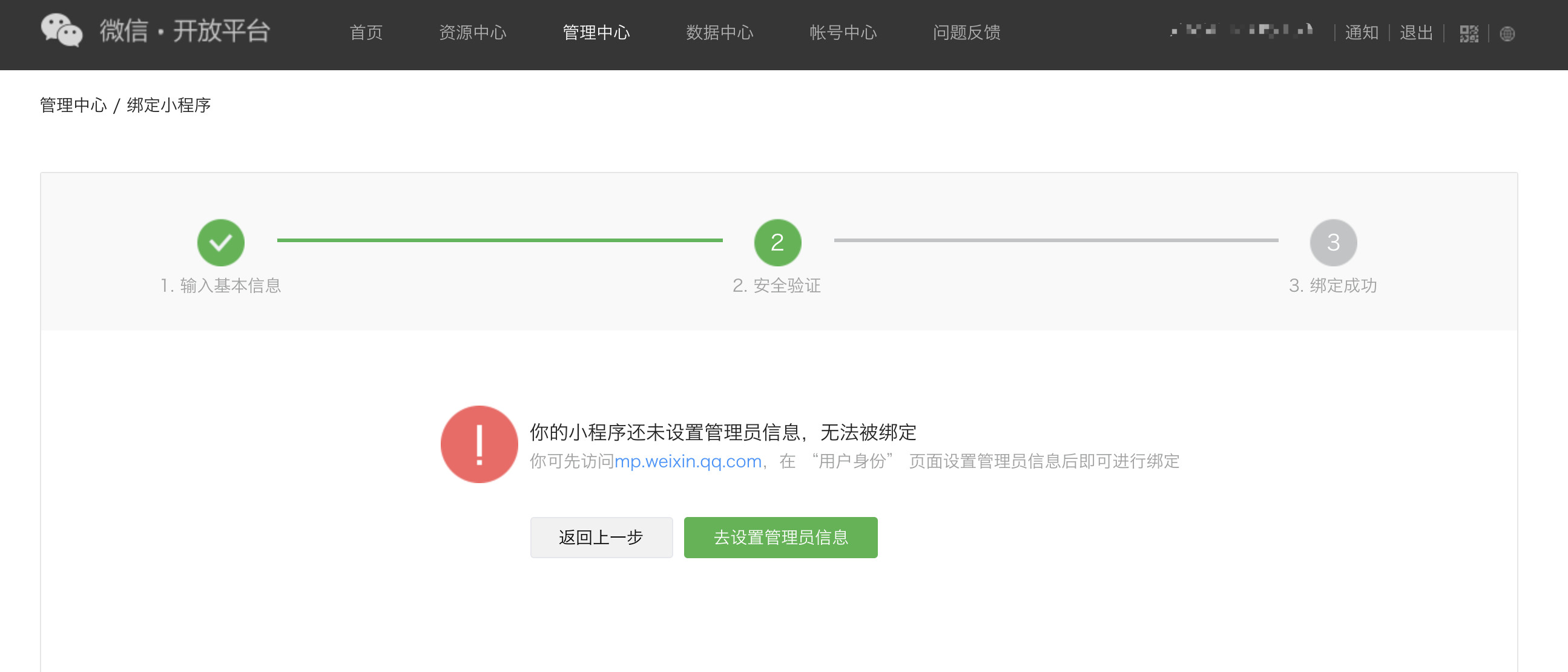 小程序已经设置管理员,但是公众平台绑定还是提示未绑定管理员身份