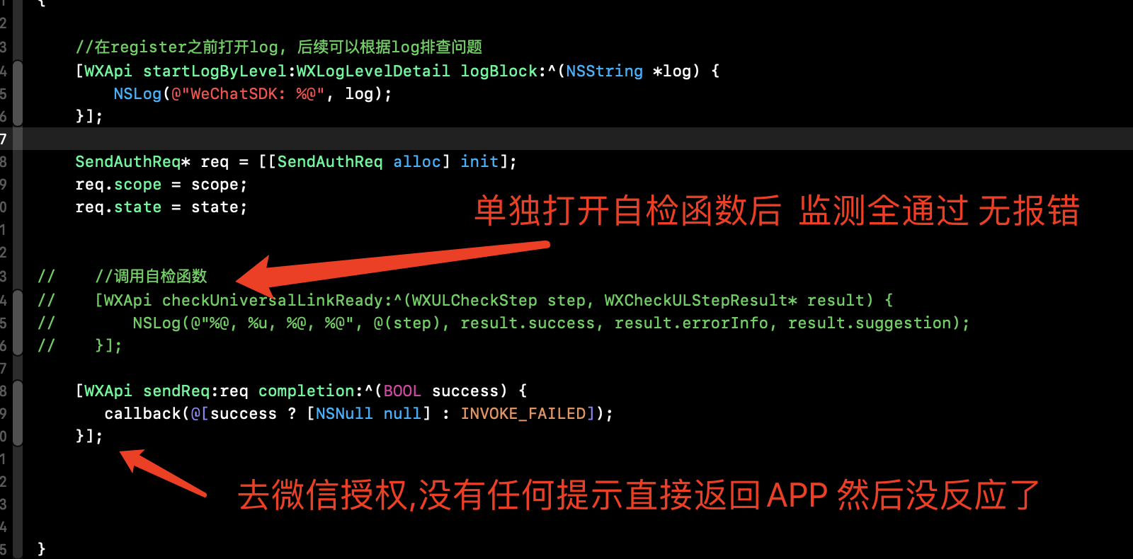 自检函数和 sendReq方法都打开 可以跳到微信页面 但弹窗提示 未知的应用请求! 版本微信版本 1.8.7.1 分享和支付都OK 但登录 绑定出现这样的问题.