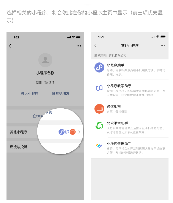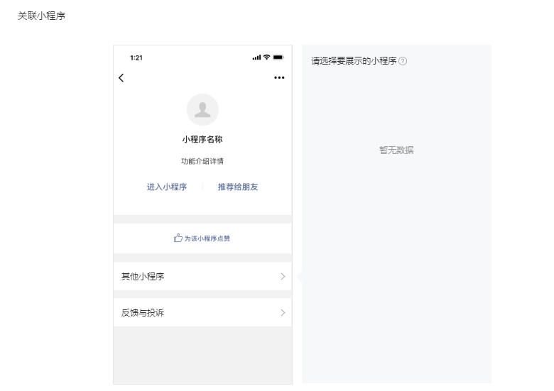 小程序关联公众号就可以显示。小程序关联小程序有展示?