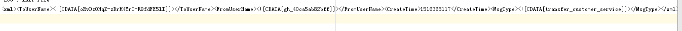 <xml><ToUserName><![CDATA[oRvDz0HqZ-zDrH4Yr0-R9fdFE5lI]]></ToUserName><FromUserName><![CDATA[gh_40ca5ab82bff]]></FromUserName><CreateTime>1516365117</CreateTime><MsgType><![CDATA[transfer_customer_service]]></MsgType></xml> |