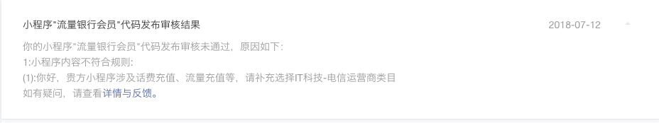 审核不通过提示小程序涉及话费充值、流量充值等服务。但是我们的小程序没有这些服务,希望能够重新审核,谢谢!