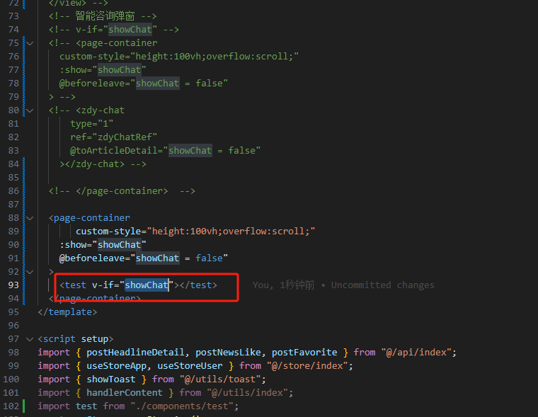 单独显示test组件是可以触发滚动,为什么加了page-container 触发不了,需求是 需要弹窗出来,点击页面回退能关闭弹窗,而不是退出当前弹窗所在的页面