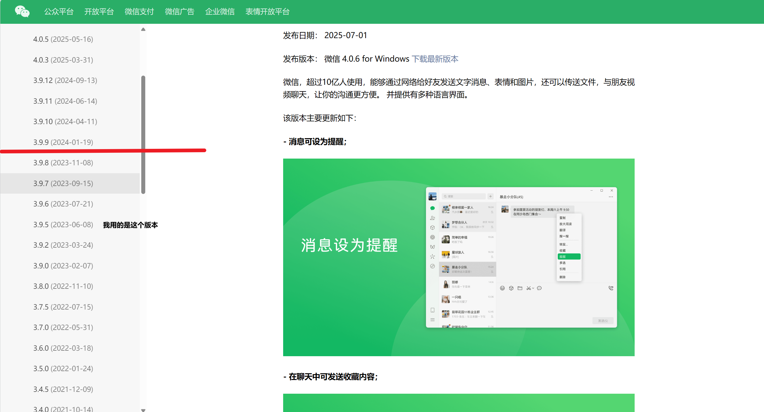1、关于微信的历史版本对照可以在微信官网上查看
