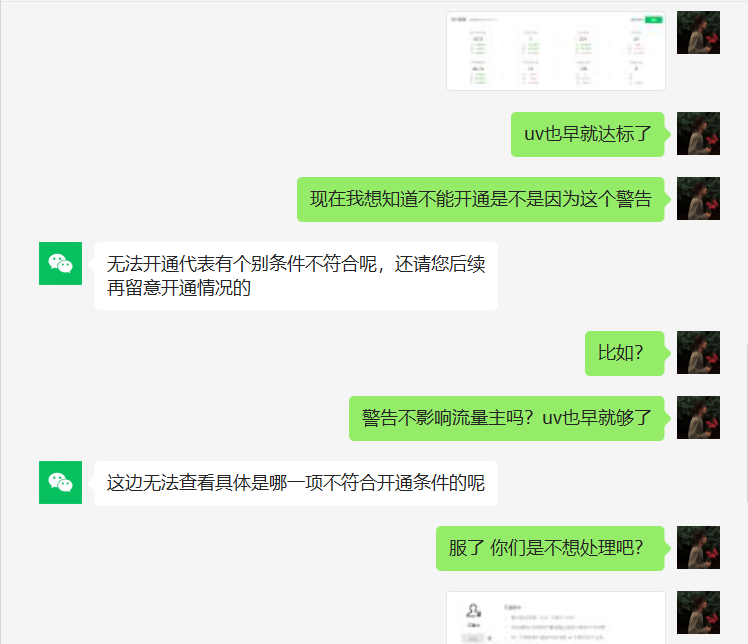 小程序警告明明整改完成了仍无法开通流量主?客服互踢皮球?