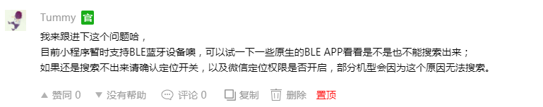 用的官方实例代码,小程序只能搜索到1,2个蓝牙设备,而手机蓝牙是能搜索到很多个蓝牙设备的.请问这个问题要怎么解决啊?