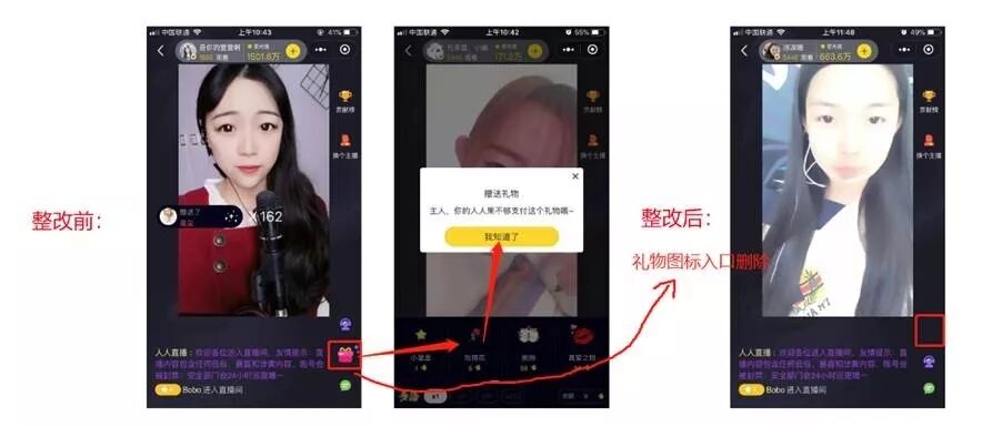 我公司的微信小程序“心动女孩”(AppID:wx792a8c7b67a81524)在2018年11月29日收到了三个违规通知(《关于小程序虚拟支付封禁通知》、《关于暂停iOS用户搜索当前小程序的通知》、《关于小程序内涉嫌存在违规内容的处理警告》,都是因为“该小程序含“付费充值赠送礼物”,虚拟商品页面含价格信息展示,并引导至“公众号下载APP进行账号充值”完成支付购买”发的通知。