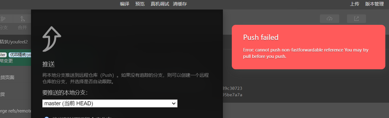 代码推送的时候提示:cannot push non-fastforwardable reference You may try pull before you push