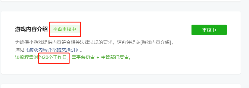 对比一个游戏仅需要审核一次的内容介绍,经常提交的版本和流量主组件都能做到隔天审核,我不相信是因为提审太多造成,请官方尽快解决这个问题