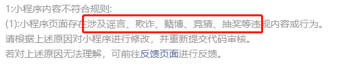 第一次提交初始版本被打回,说里面有这些违规行为,我重新更换了小程序主体内容。再次提交结果不到几分钟又是打回是同样的理由,真的很困惑 审核人员在看没有?所以我要求审核人员重新审核,如有存在问题请截图说明。另外碰到这种类似的问题已经好几次了,希望审核人员检查下 出现这种的问题是什么导致的?代码更新延迟,还是部分审核人员偷懒?