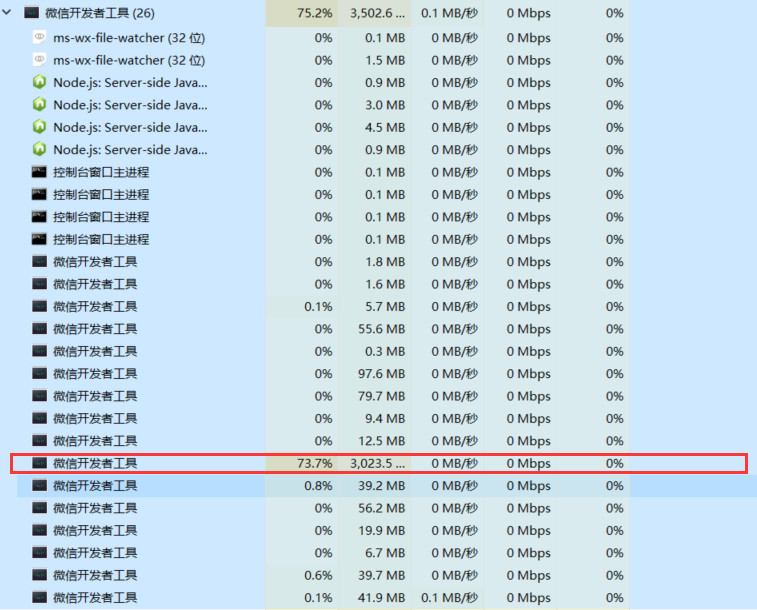 使用了taro框架,自动编译后,偶尔会出现开发工具无响应,无法关闭,开发工具的某个进程就资源占用开始飙升,持续10分钟左右,然后就是黑屏