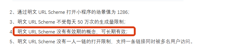 明文url scheme和加密的url scheme有效期有区别吗? 拼接得到的明文url scheme应该是永久有效的,依赖于云开发生成的加密url scheme才是30天有效期吧? 还是怎么个情况? 搞不懂 有没有大神解释下