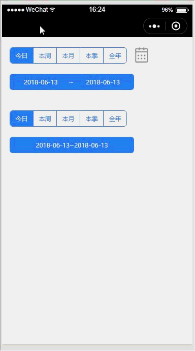 let period = requirePlugin("GetPeriod")Page({ onLoad() { // 获取不同时段的开始日期和结束日期 // 获取今天时段 let nownow = period.getNowDate(); console.log('今天日期:' + nownow); // 获取本周的开始日期和结束日期 let weekStart = period.getWeekStartDate(); console.log('本周的开始日期:' + weekStart); let weekEnd = period.getWeekEndDate(); console.log('本周的结束日期:' + weekEnd); // 获取本月的开始日期和结束日期 let monthStart = period.getMonthStartDate(); console.log('本月的开始日期:' + monthStart); let monthEnd = period.getMonthEndDate(); console.log('本月的结束日期:' + monthEnd); // 获取本季的开始日期和结束日期 let quarterStart = period.getQuarterStartDate(); console.log('本季的开始日期:' + quarterStart); let quarterEnd = period.getQuarterEndDate(); console.log('本季的结束日期:' + quarterEnd); // 获取本年的开始日期和结束日期 let yearStart = period.getYearStartDate(); console.log('本年的开始日期:' + yearStart); let yearEnd = period.getYearEndDate(); console.log('本年的结束日期:' + yearEnd); console.log('------------------------------------------------------------------------'); // 不同连接符的获取的时段字符串 // 获取今天时段 let now = period.getPeriod({ periodType: 'now' }) console.log('今天时段:' + now) // 获取本周时段 let week = period.getPeriod({ periodType: 'week',spaceType: '*' }) console.log('本周时段:' + week) // 获取本月时段 let month = period.getPeriod({ periodType: 'month', spaceType: '=' }) console.log('本月时段:' + month) // 获取本季时段 let quarter = period.getPeriod({ periodType: 'quarter', spaceType: '+' }) console.log('本季时段:' + quarter) // 获取全年时段 let year = period.getPeriod({ periodType: 'year', spaceType: '/' }) console.log('全年时段:' + year) }}) |