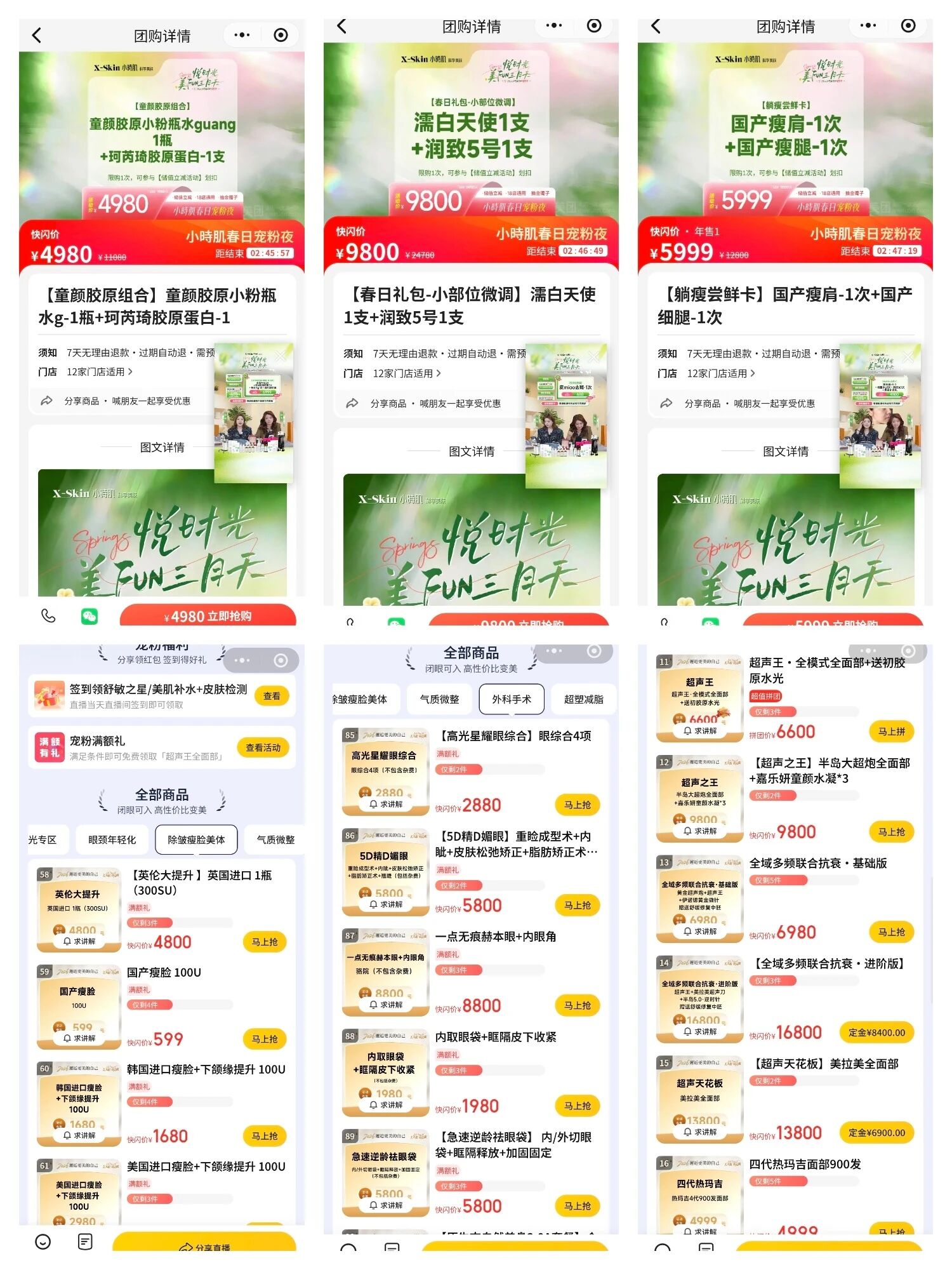 该小程序平台入驻多家医疗美容机构,通过直播形式销售以下禁售商品: