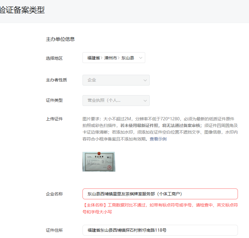 改了执照名称,已经在微信公众平台变更了名称,去备案,一直提示,执照名称是去公家公示网复制的,还是一直不行,麻烦协助处理下呢。谢谢