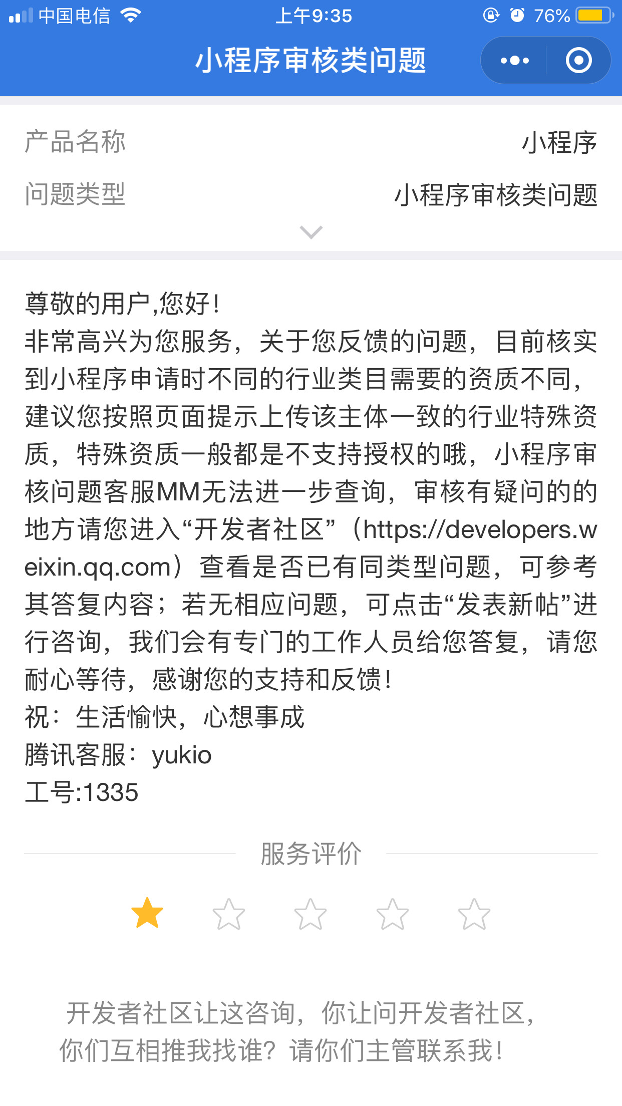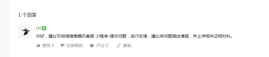 就一个需要人工介入审核的问题互相推脱,而且腾讯客服的回答还是每次复制粘贴的,内容都一样!