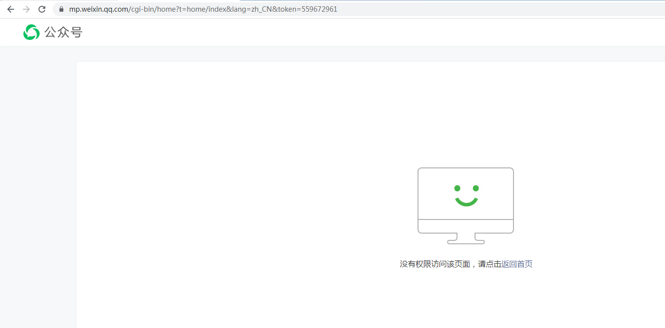 公众号登录,管理员微信扫码后提示没有权限访问该页面,请点击返回首页,换了很多台电脑和浏览器,谷歌chrome无痕模式也用过了,也尝试登录了很多天。gh_d2103c7c754b,账号做了迁移,这是原账号,需要登录下载迁移费的电子发票。