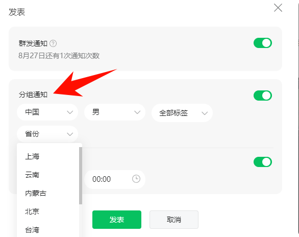服务号的文章推送可以分不同城市或不同人群进行发布吗?