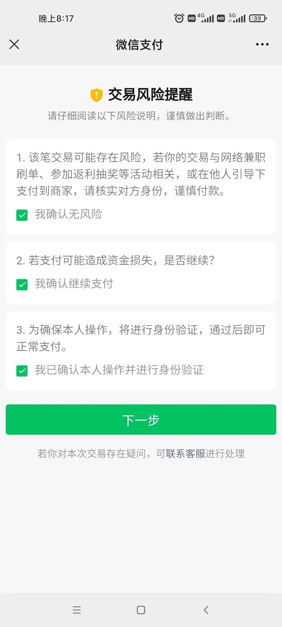 2.如无拦截记录,可根据页面提示,联系付款方更换付款账号/更换支付方式/降低支付额度等方式解决。