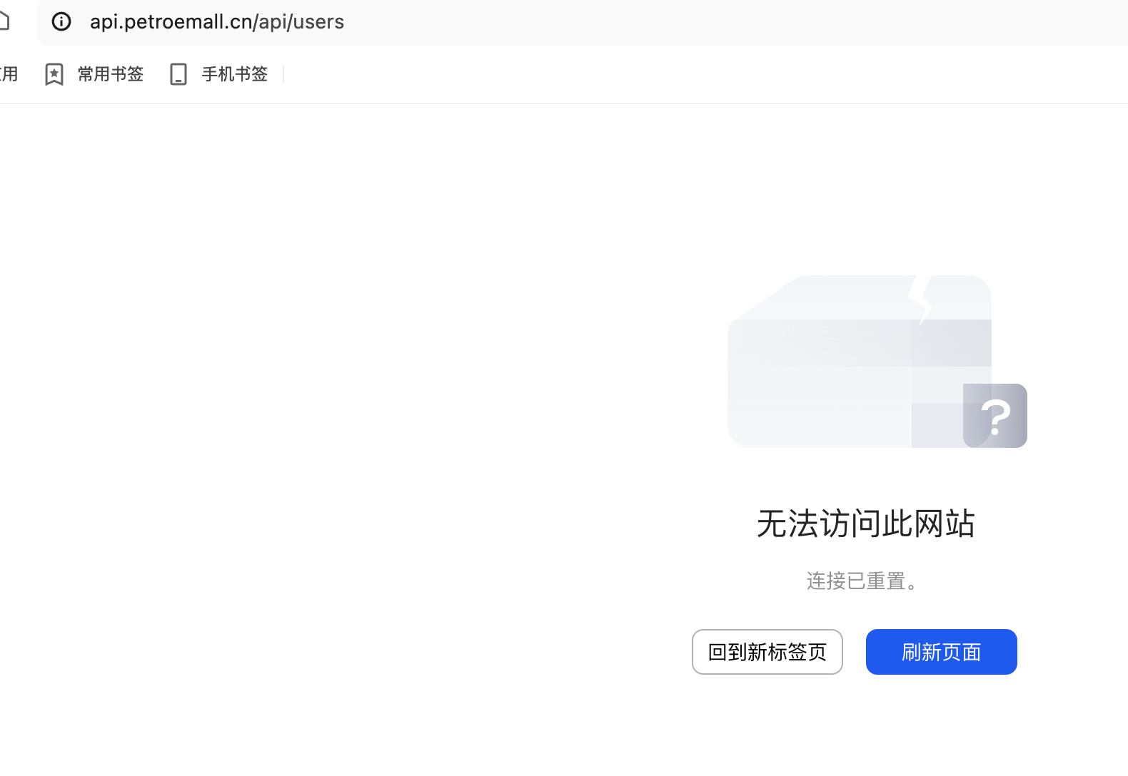 2.直接用浏览器访问接口,浏览器直接输入 https://api.petroemall.cn/api/users,返回结果正常。