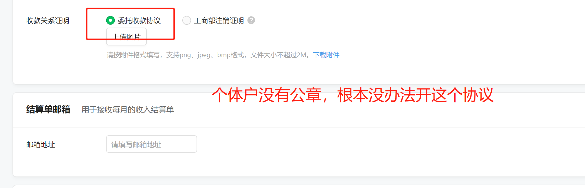 个体户没有公章啊!明明收款人信息和执照主体一致,还一定要公章。就不如直接讲不让提现好