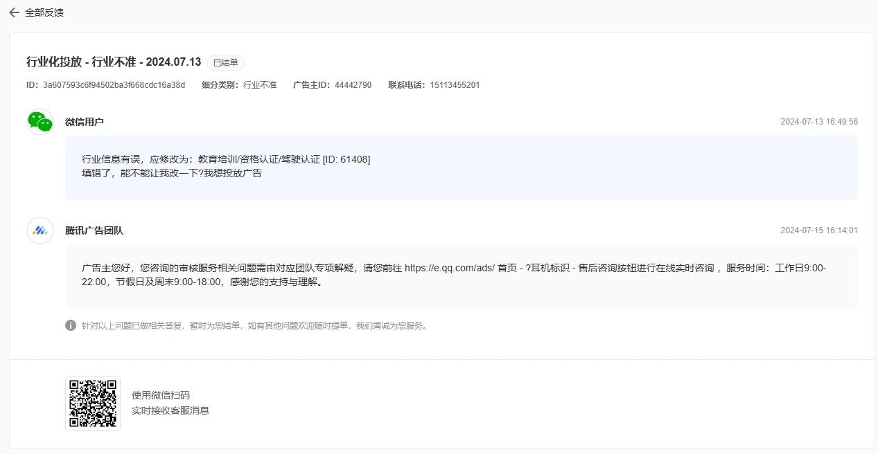反馈修改不了,按照反馈到了https://e.qq.com/ads/ 找到耳机标识 来到了和机器人聊天页面