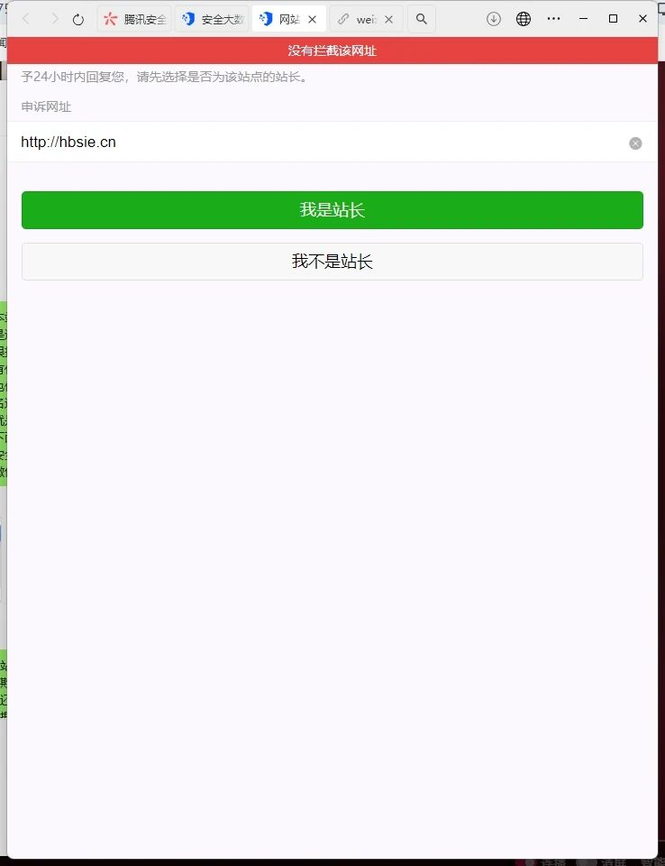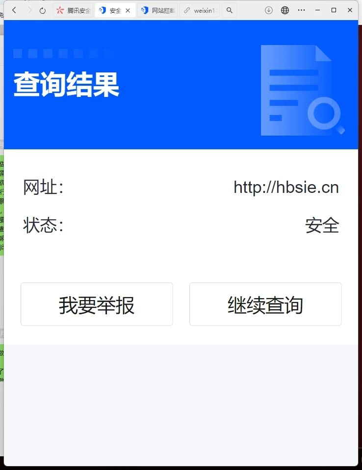 也使用了「腾讯安全-网址安全中心[6]」对网站域名进行检测,显示的是域名安全并没被拦截,但是就是显示需要访问,麻烦微信审核员,核实恢复一下可以微信内直接访问的服务