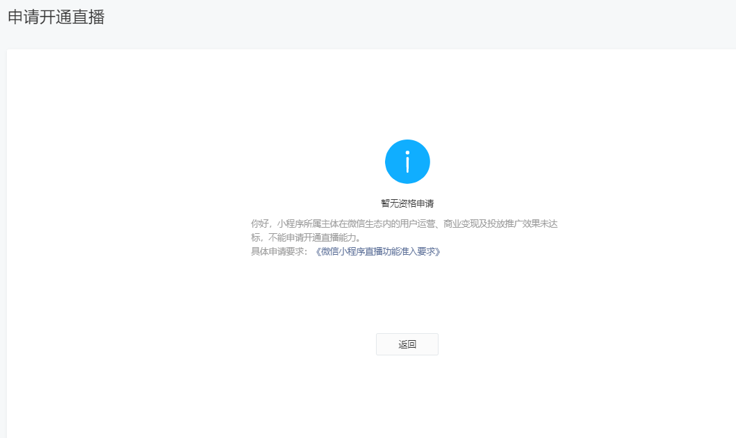 你好,核实到小程序暂不符合微信小程序直播功能准入要求,还需满足下列条件之一: