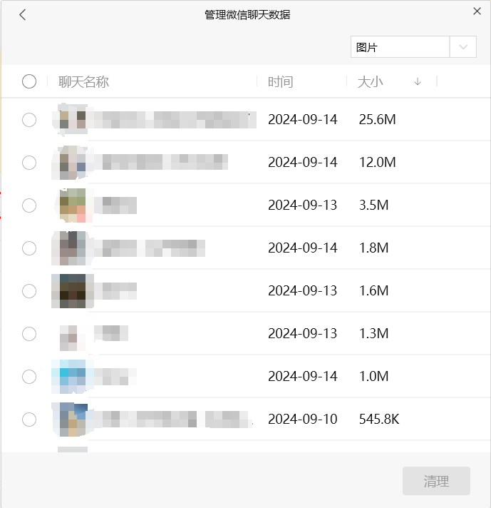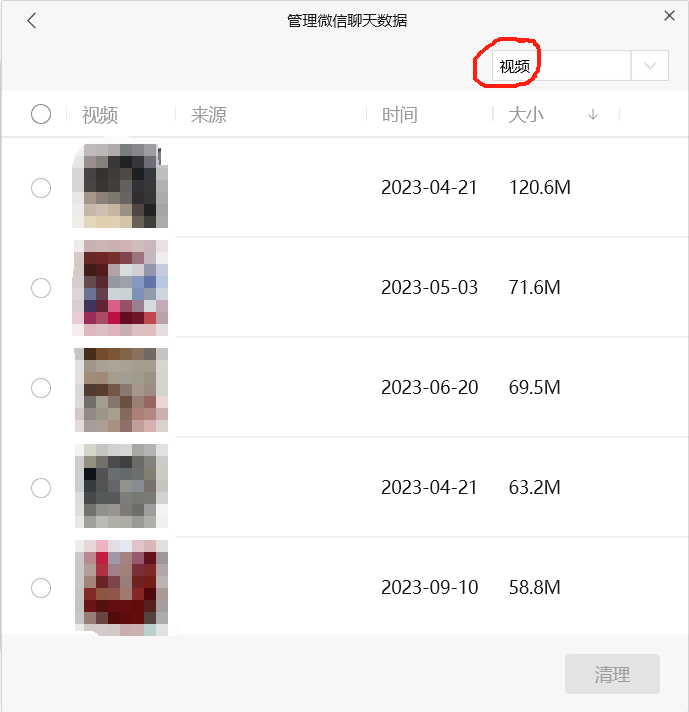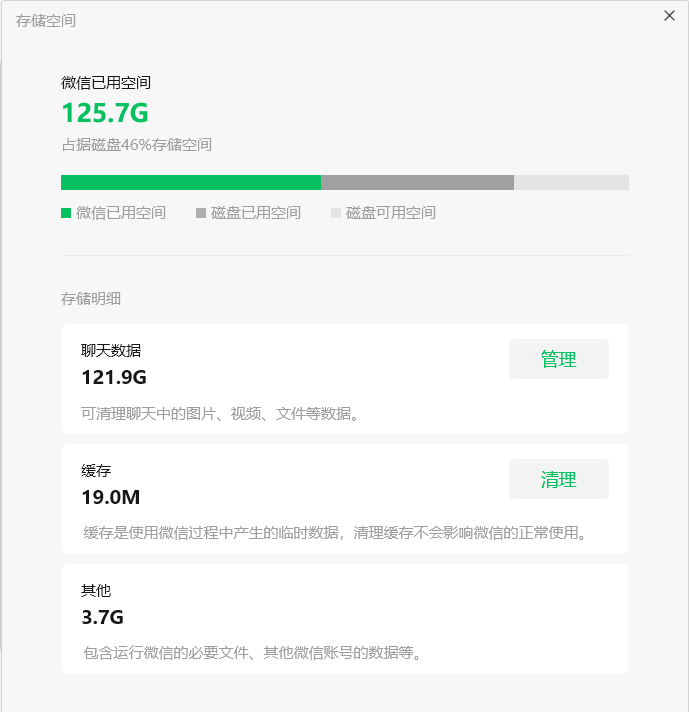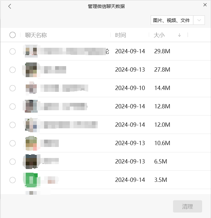 在PC微信程序中,打开设置-通用设置-存储空间管理后: