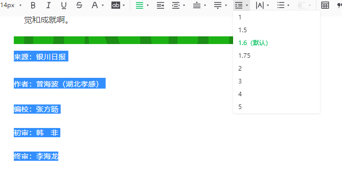 你好,近日我在编辑微信的时候,出现行间距过大的情况,无论怎么缩减行间距,都显示这么大,清除格式或者重新创建图文,都没用。