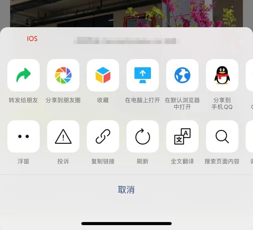 对比:IOS微信网页右上角打开,没有还有头像列表,只有分享按钮,点击“转发给朋友”,分享卡片信息正常;