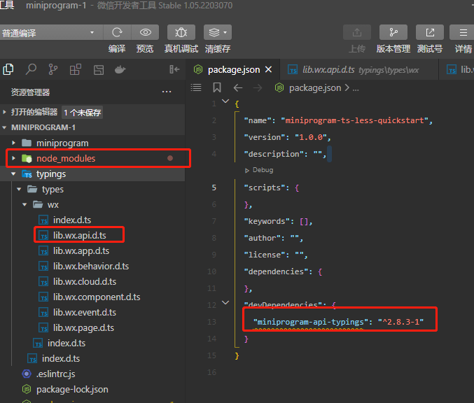 执行npm install后生成的依赖 与小程序项目初始typings下的文件不是一个版本。