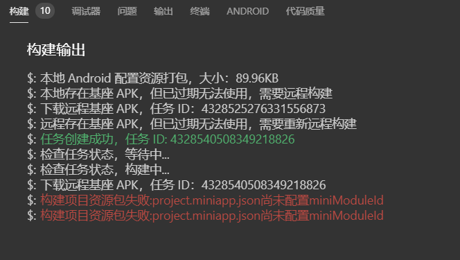构建项目资源包失败:project.miniapp.json尚未配置miniModuleId