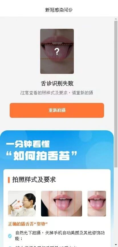 问题三:以下AI舌诊检测驳回的页面,哪些功能字眼需要去掉及优化修改,能否给一些优化建议。