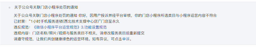 升级后类目自动取消,并封禁了部分门店小程序