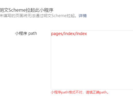 原文:通过明文 URL Scheme 拉起的小程序(页面)必须要提前在「小程序管理后台 -> 设置 -> 隐私与安全 -> 明文 scheme 拉起此小程序」中进行声明;