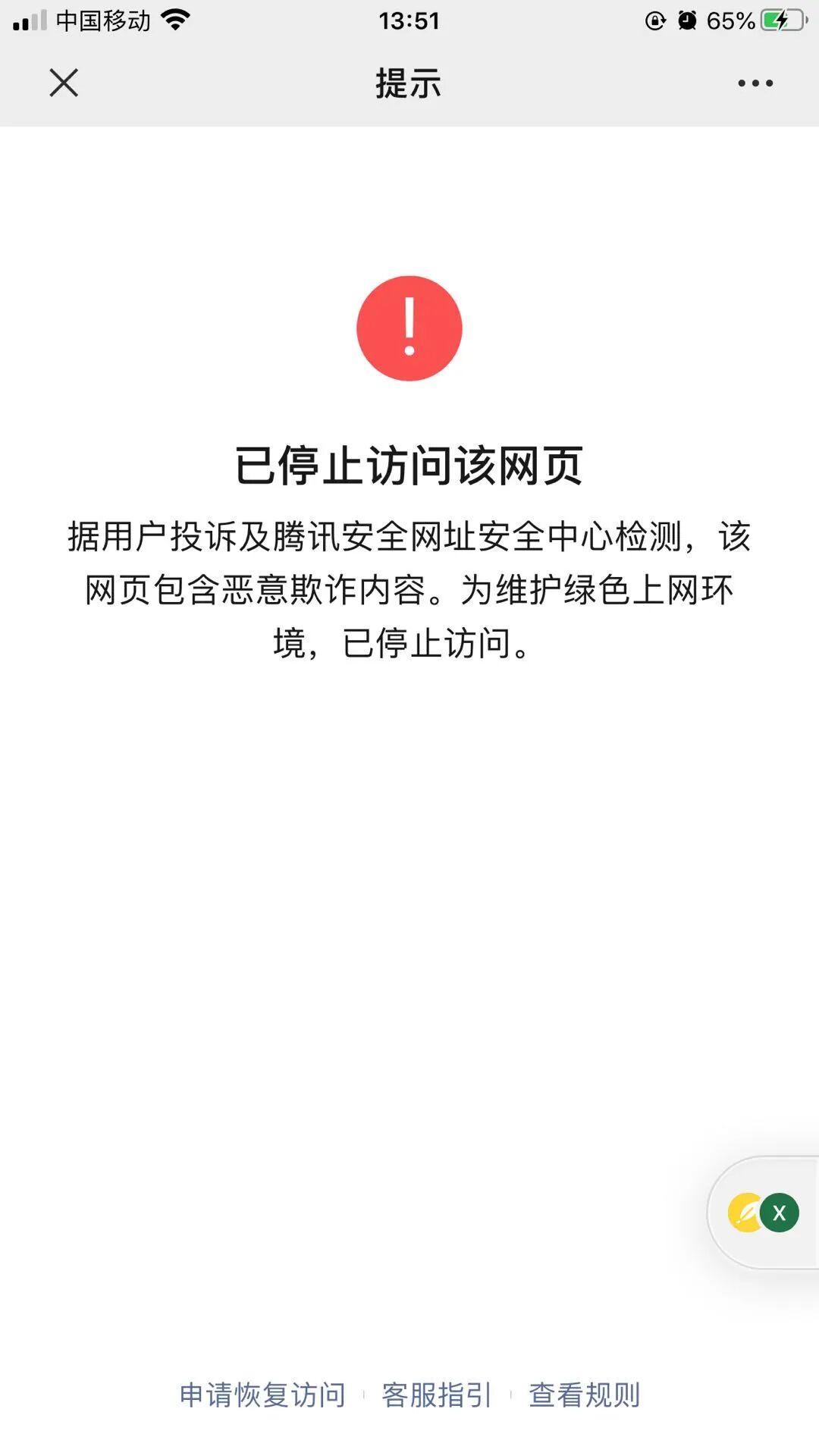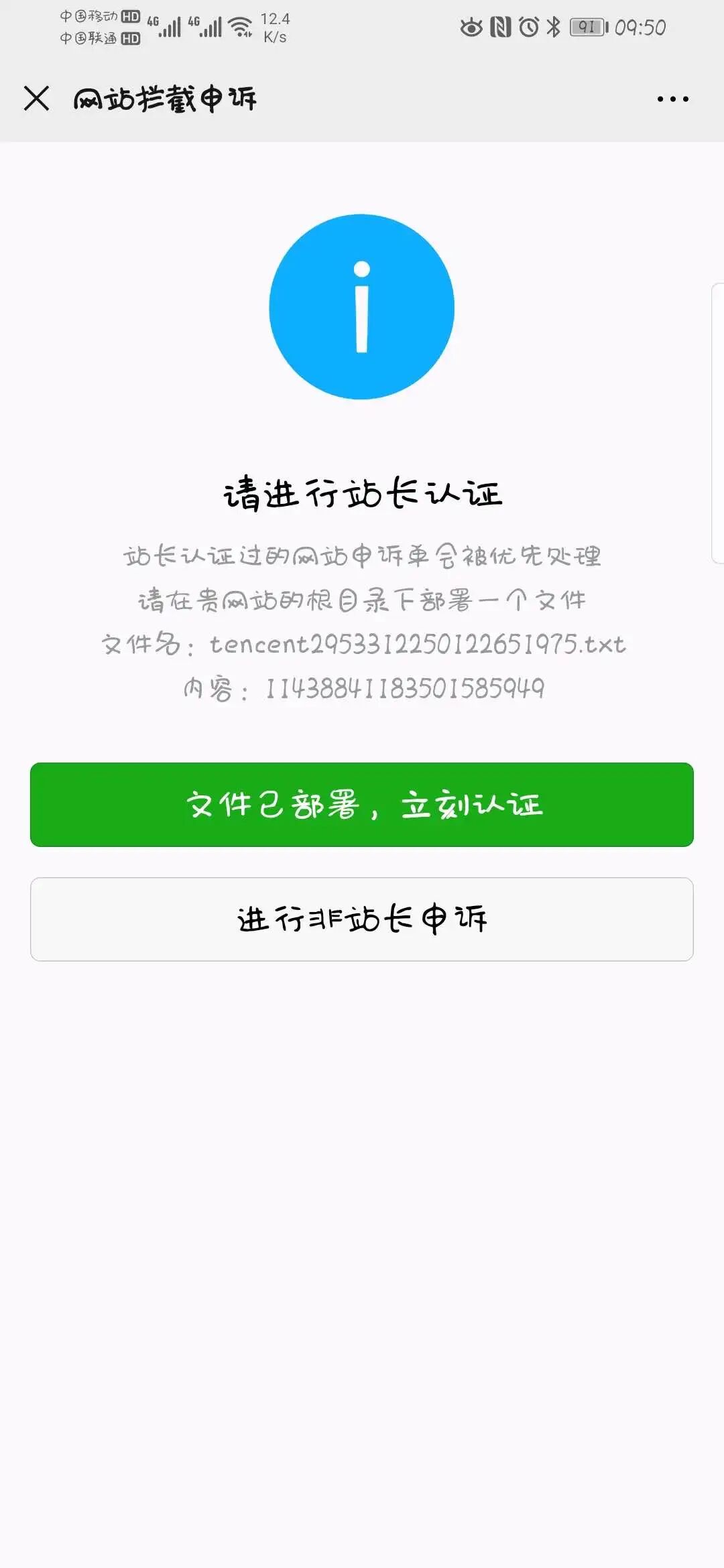 你好,我司http://sunlon.shebank.com.cn/SunCreditWX/wechat/form域名下部分链接已停止访问该网页申请恢复不通过的具体原因是什么?域名是已备案的子域名,已经按照站长申诉部署验证及非站长申述都没解封,非站长申述上传资料后查询不到申诉状态,我们想知道具体是哪里违规了?请告知!