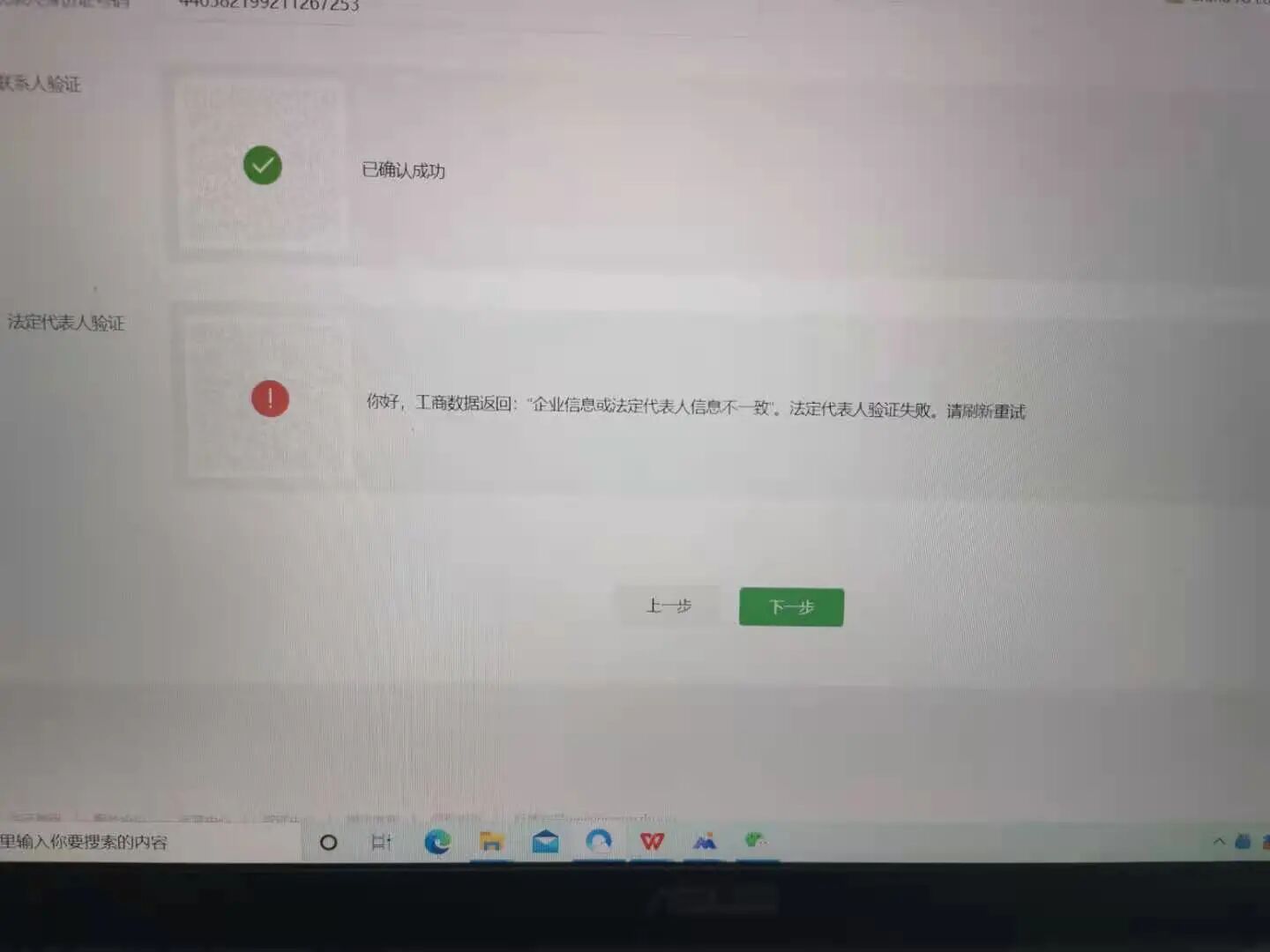 微信公众号认证,点击企业法人扫脸认证,总是失败,营业执照更新是1年前的事情了,会是什么问题呢。