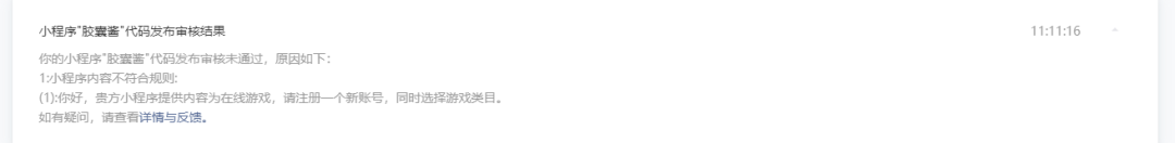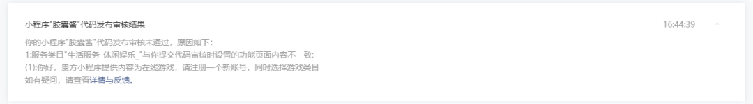 刚刚提交的审核又下来了,我这个和扭蛋鸡一样的休闲娱乐小程序被判定为在线游戏。