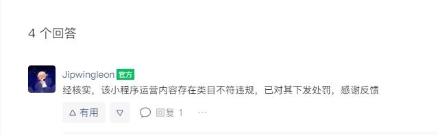 你好,平台对于违规小程序的处理是根据实际具体情况进行评估,若发现小程序内存在其他违规行为,可在小程序内发起举报,感谢反馈