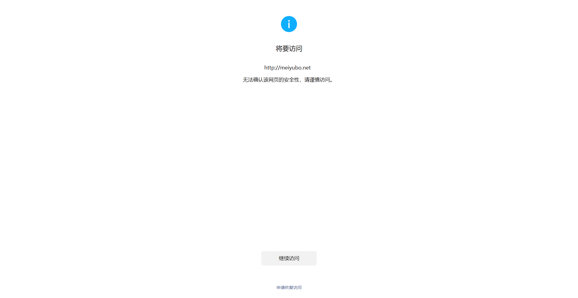 您好,我的域名(meiyubo.net)我在微信访问网站就出现“无法确认网页安全性”,我通过腾讯安全中心检测也没问题,解析公司官网后,还是一样提示,当前网站为公司门户网站,整个网站就一个html,经检查网页里没有不安全的内容,并没有违规内容,希望帮忙核查解除。