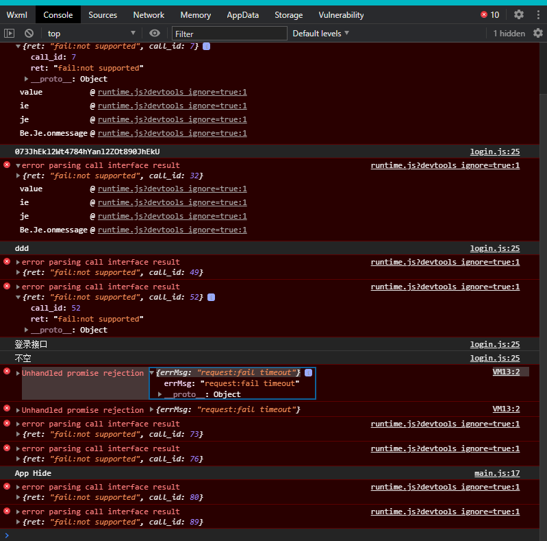 error parsing call interface result {ret: "fail:not supported", call_id: 2}