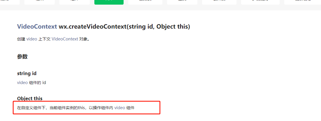 let videoContex = wx.createVideoContext(this.data.videoDetail.id, this);文档里写了组件要传this