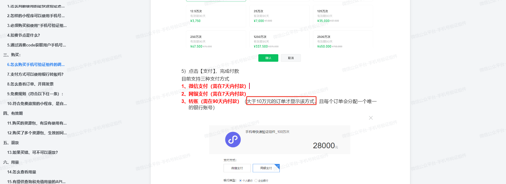 你好,(低于10万元的订单)如果需要对公账户付款,建议优先考虑网银支付。详情查看QA https://developers.weixin.qq.com/miniprogram/dev/framework/open-ability/getPhoneNumber.html