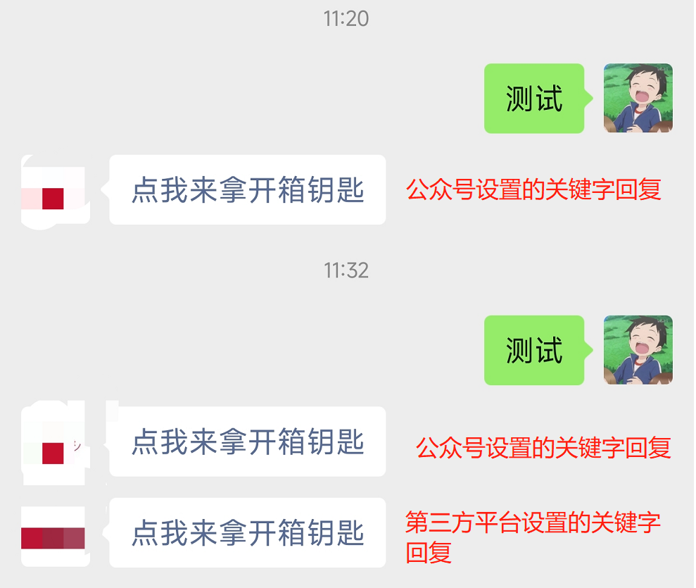 如果我在微信公众号上设置了关键字回复,同时通过第三方平台的接口也设置了同样的关键字回复,用户回复关键字会收到两条关键字回复。