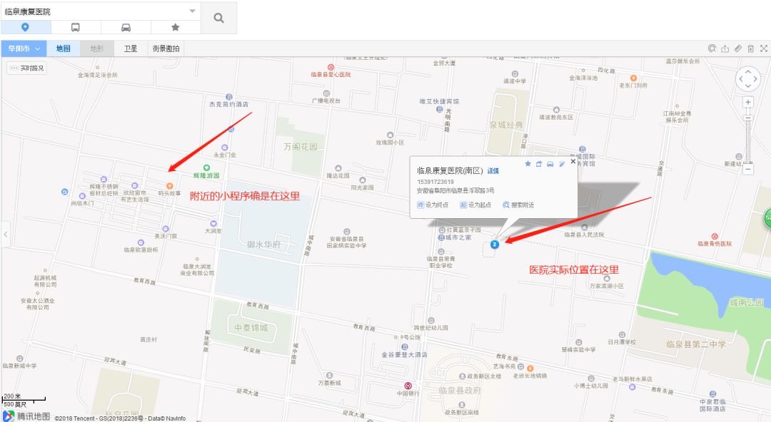 这个是我们医院实际的位置,与附近的小程序位置完全不相符,有没有人解答一下啊! 谢谢!