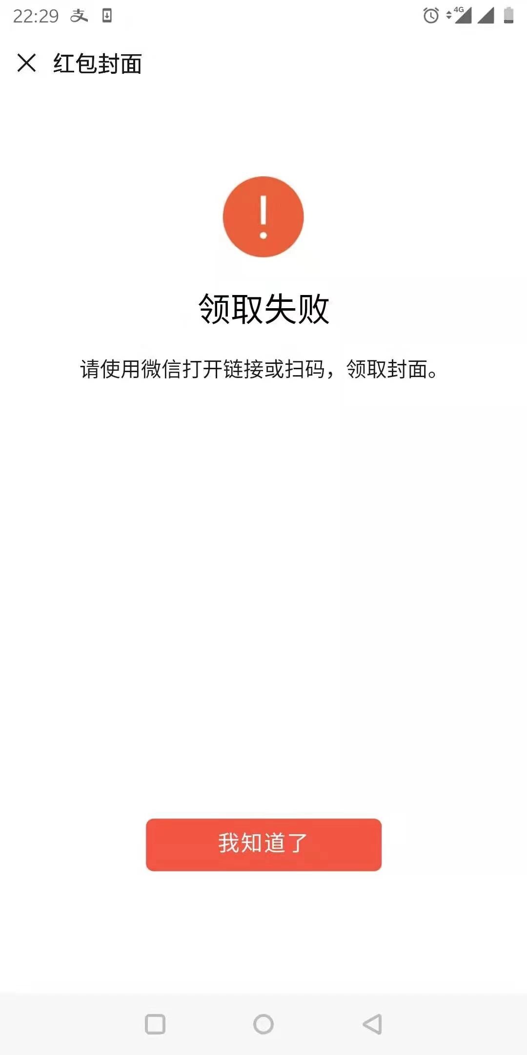 我有一个公众号H5页面,希望在H5页面中点击按钮后激活微信红包封面,可是会提示"请使用微信打开链接或扫码,领取封面",请问这个可以实现吗?