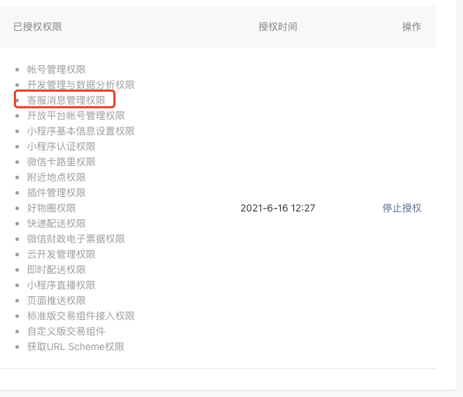客服消息管理权限是有的,小程序客服消息通知也是可以正常接受的